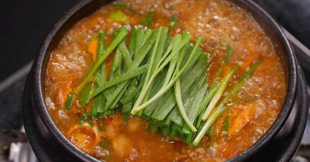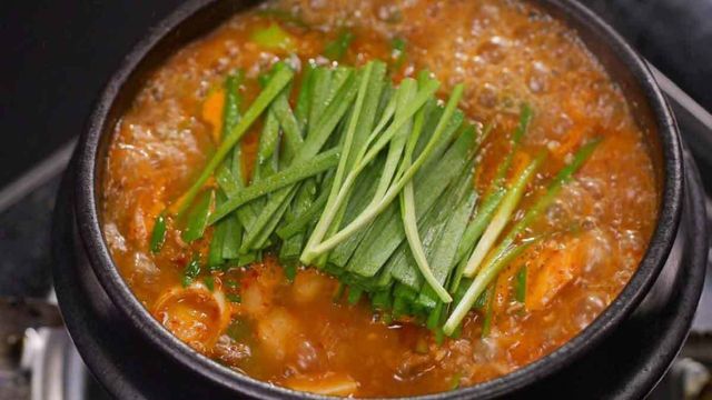 5. 청양고추와 부추를 넣고 한소끔 끓이면 완성된다.