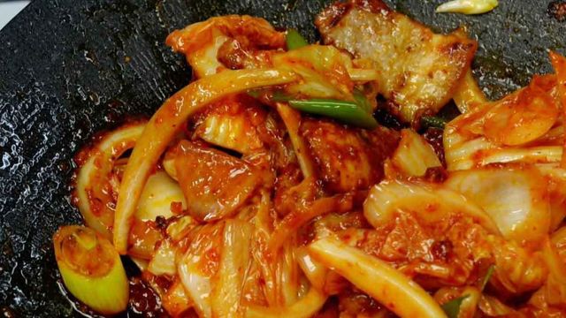 만드는법은 삼겹살은 팬에 소금과 후추로 간을 한 뒤, 강불로 노릇하게 굽는다. 고기가 익으면 팬 정중앙에 고기 기름을 모은 후, 김치를 넣고 볶는다. 김치가 노릇해지면 양념장을 넣고 양파와 대파를 더해 볶는다. 마지막으로 참기름을 뿌려 고소한 맛을 더하면 김치제육볶음이 완성된다.