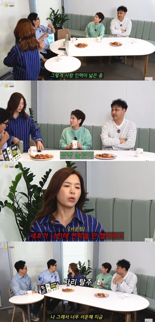 이경실은 "이번에 조세호 결혼식이 그랬다"고 말했고, 김지선은 "세호가 나한테 연락을 안 했더라고. 나 그래서 너무 서운해 지금"라며 조세호를 향해 서운함을 드러냈다.