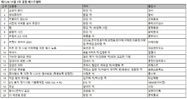 한편 한강의 노벨문학상 수상 열기는 식지 않았다. 1980년 광주의 5월을 그린 한강의 대표작 ‘소년이 온다’(창비)는 4주 연속 종합 베스트셀러 1위를 차지했다.