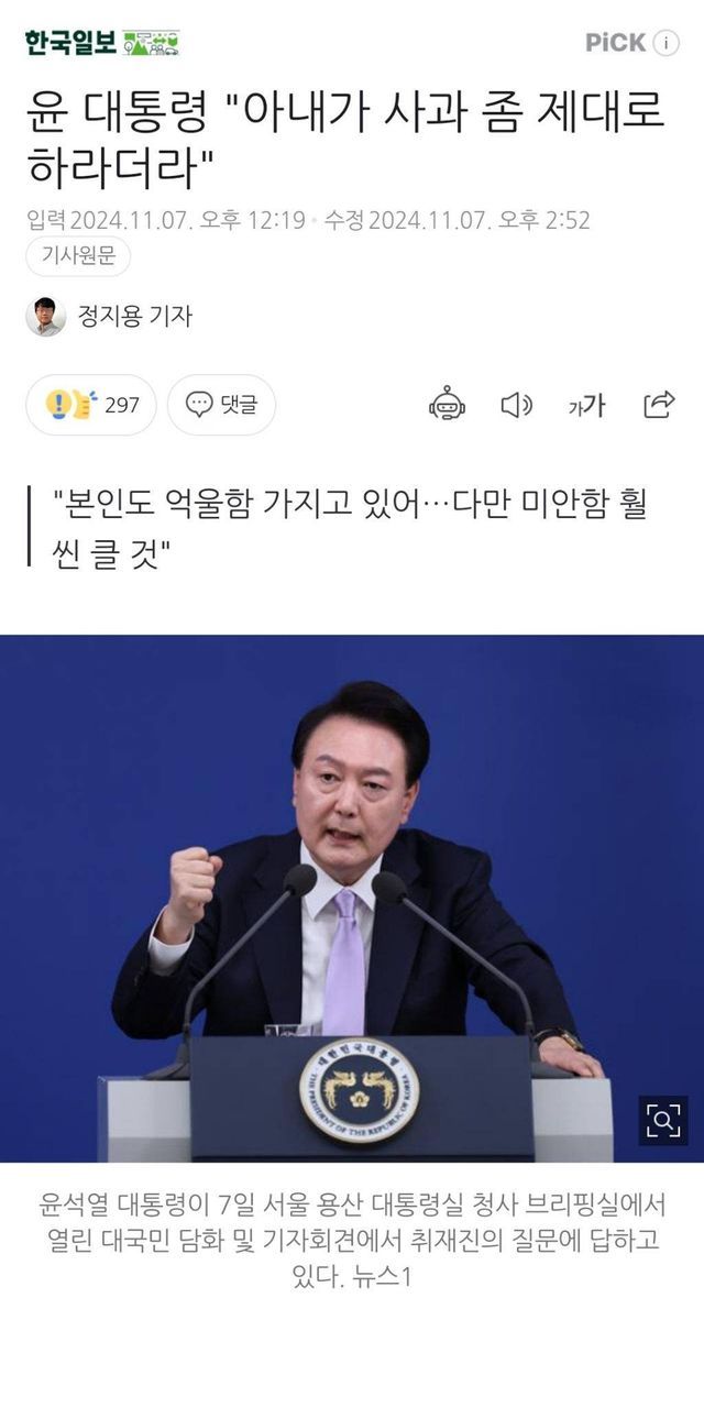 윤 대통령 "아내가 사과 좀 제대로 하라더라"