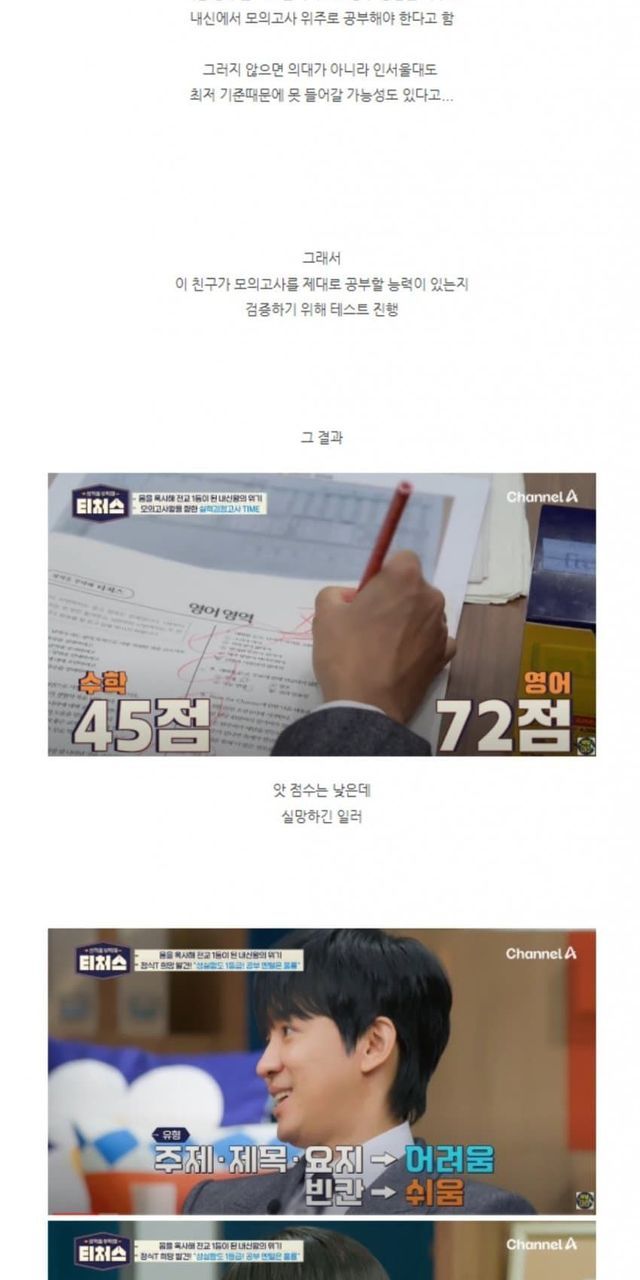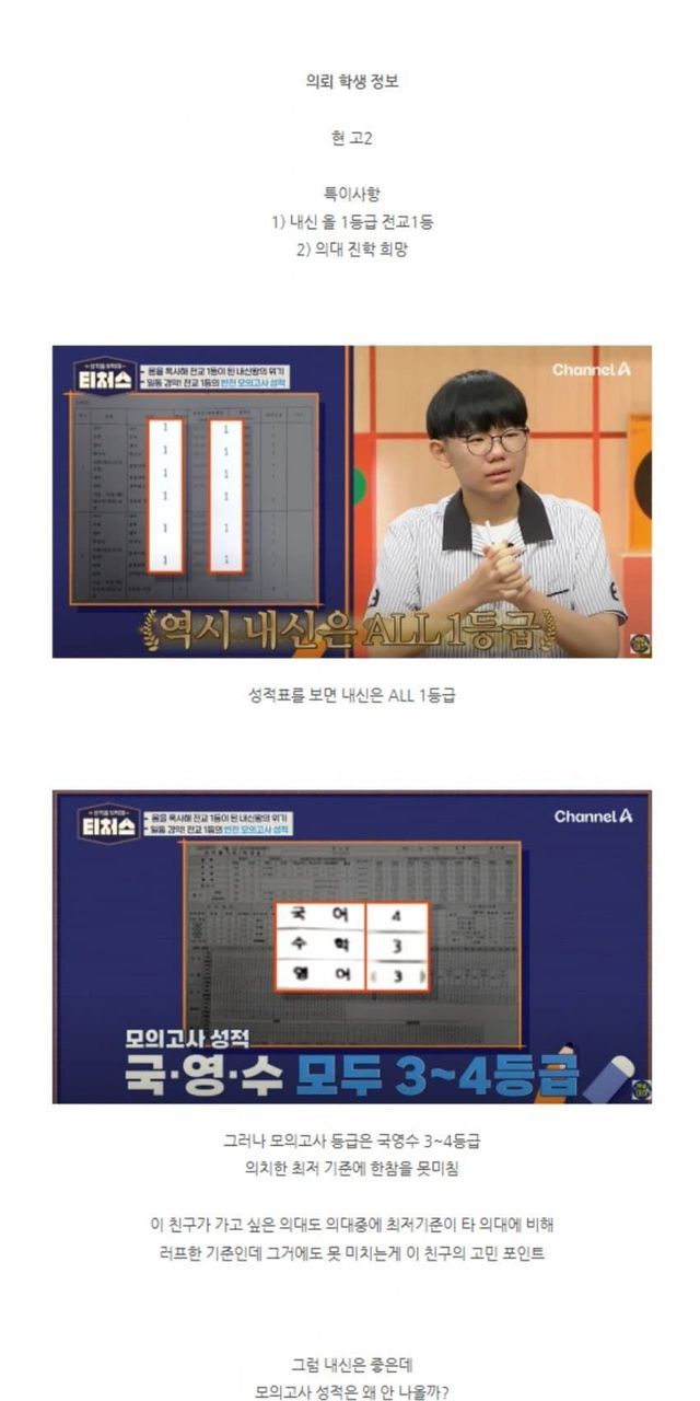 내신 1등급인데 모으고사 성적은 처참한 전교 1등.