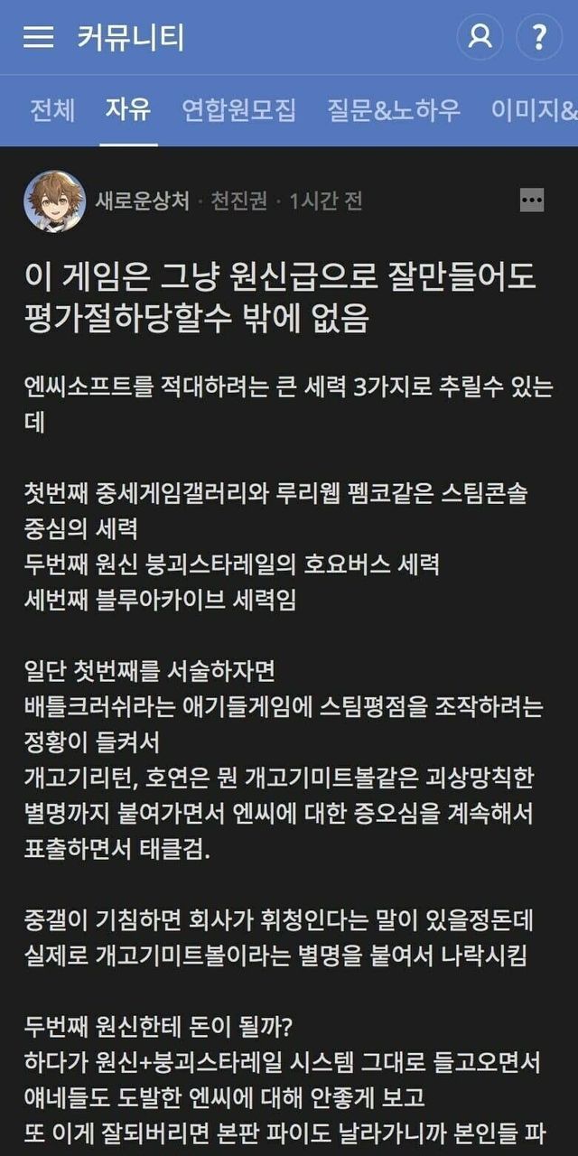 내가 한국사람들을 잘아는데.. 만약 호연이 원신급으로 잘 만들었다면