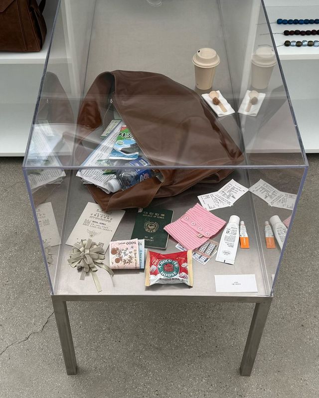 팔로마울 팝업 한켠에는 이색적인 인스톨레이션이 등장했습니다. 정체는 바로 각각 한국과 스페인에 사는 두 여성의 가방 속 물건들이었죠. 한국에서 생활하는 '유미'의 가방 속에 든 건 김, 초코파이, OTP 카드, 현금이었습니다. 바르셀로나에서 온 '팔로마'의 가방에서도 꼬깃꼬깃한 영수증과 실핀, 칫솔 등을 엿볼 수 있었는데요. 두 여성의 소지품에서 눈에 띈 건 비싼 액세서리도, 휘황찬란한 지갑도 아니었습니다. 그저 소소한 하루를 위해 챙긴 일상적인 물건들이었죠.