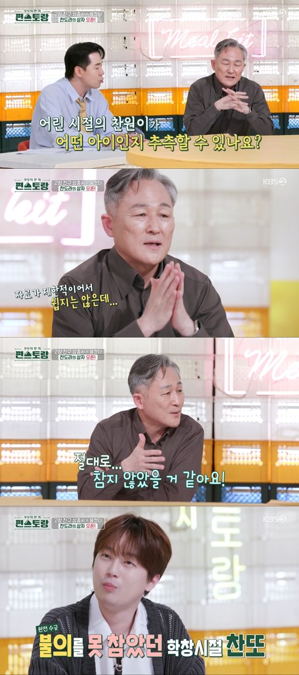 붐은 표창원에게 "다른 생각을 하는 것 같다"라며 "충격적인 과거 자료들을 보면서 어린 시절 이찬원은 이런 아이다 추측할 수 있나"라고 물었다.