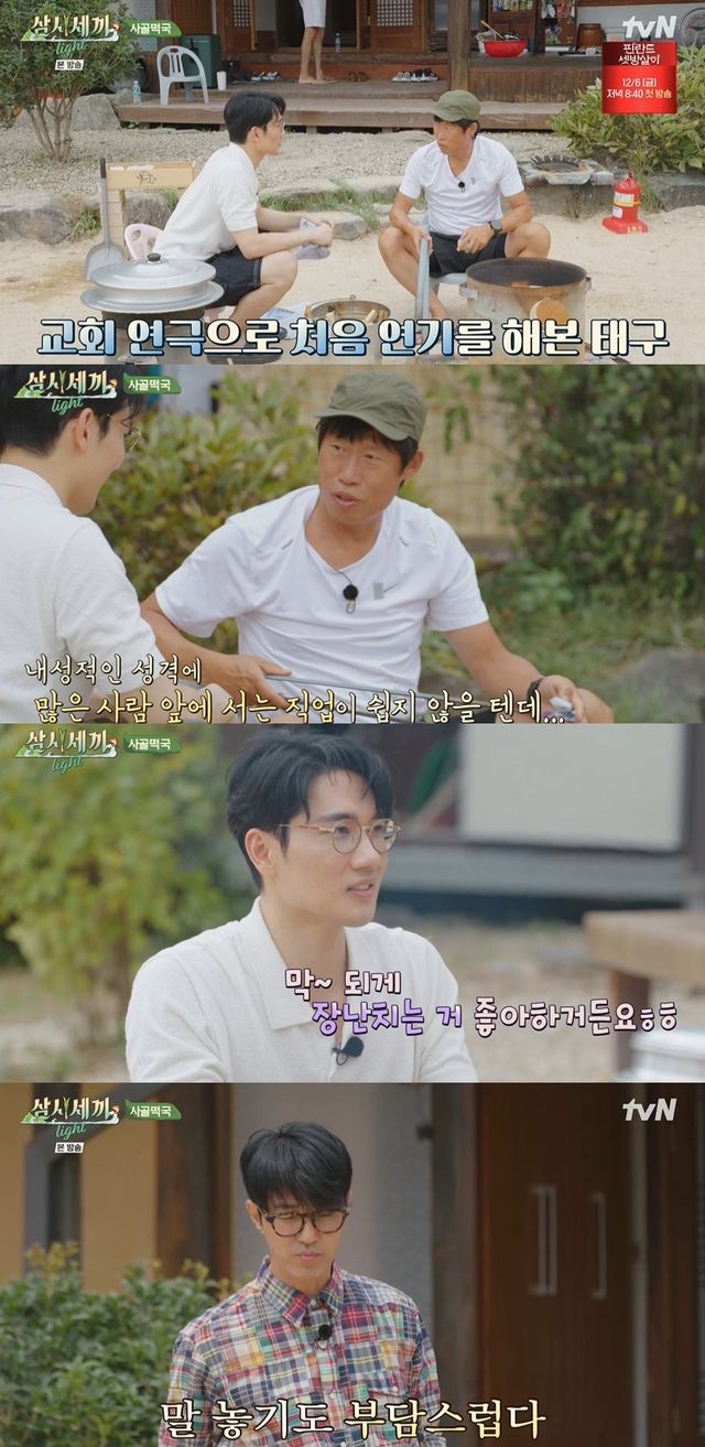 8일 방송된 tvN '삼시세끼 라이트(Light)'에서는 지리산 세끼 하우스에서 연예계 대표 극 내향인 엄태구가 방문해 배우 차승원, 유해진과 유쾌한 케미스트리를 뽐냈다.