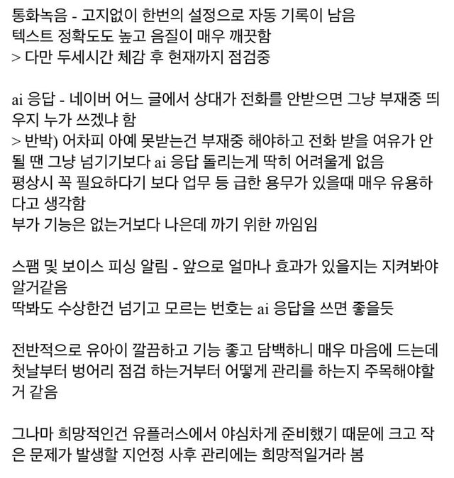 실시간 통화녹음 뿐만 아니라자막에 전화까지 대신 받아주는 기능이 있다고 함
