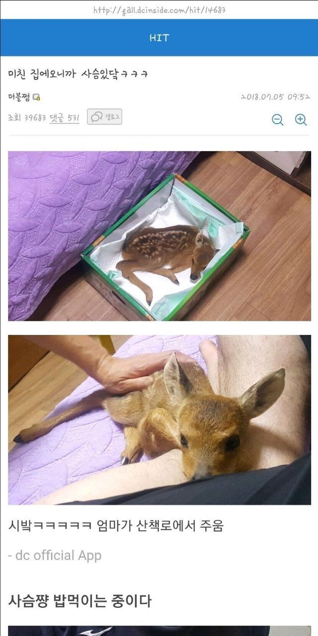 엄마가 산에서 사슴 주워 옴..