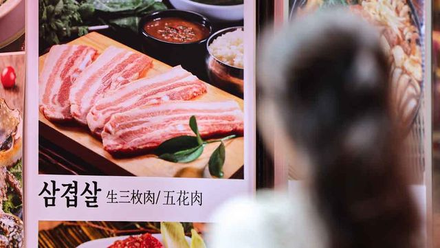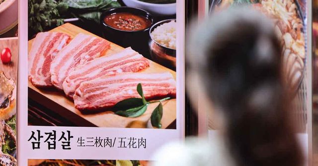 서울 중구 명동거리 음식점 앞에 삼겹살 등 메뉴 안내문이 놓여 있는 모습. / 뉴스1