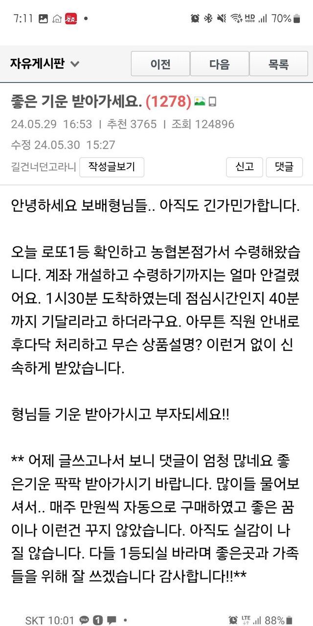 당신에게 행운이 가기를... 다들 부자 되세요