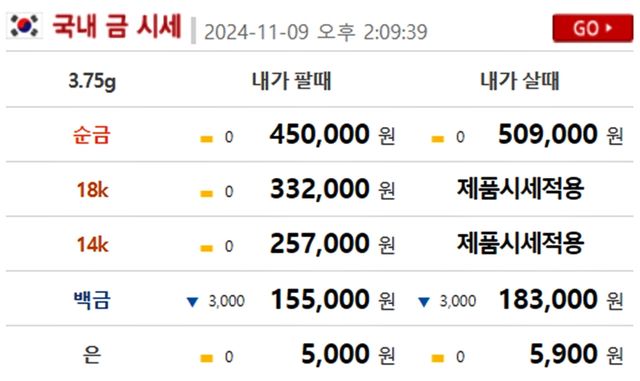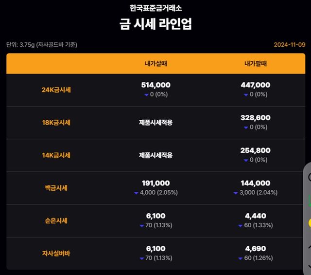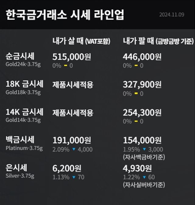 순금(24K) : 매입가 51만 5000원 / 매도가 44만 6000원