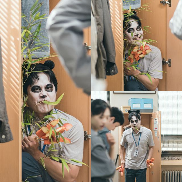 이와 관련 김성균이 판다로 변신해 눈길을 끈다. 극 중 푸바오 분장을 한 구대영(김성균)이 경찰서 안 여기저기에서 범상치 않은 몰골로 출몰한 상황. 구대영은 얼굴은 새하얗게, 눈 주변은 새까맣게 칠한 뒤 판다 귀를 형상화한 머리띠까지 장착해 웃음을 안긴다.
