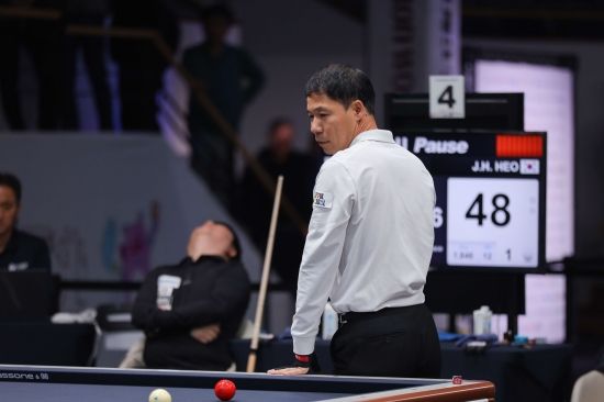 (엑스포츠뉴스 이정범 기자) '서울 3쿠션 당구월드컵' 허정한 선수의 경기 모습이 눈길을 끈다.