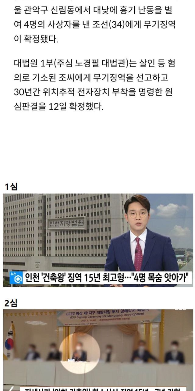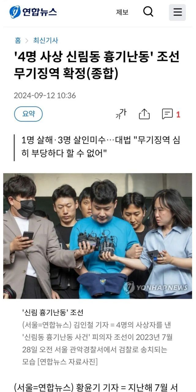 1명 죽인 흉기난동범 – 무기징역