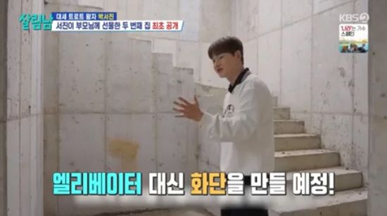 박서진은 돈이 없어서 엘리베이터 대신 그 자리에 화단을 만들 계획이라고 했다.