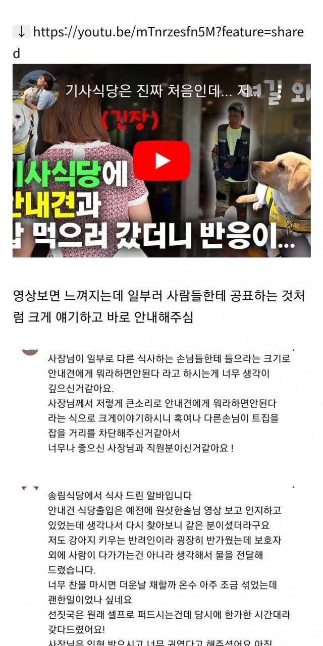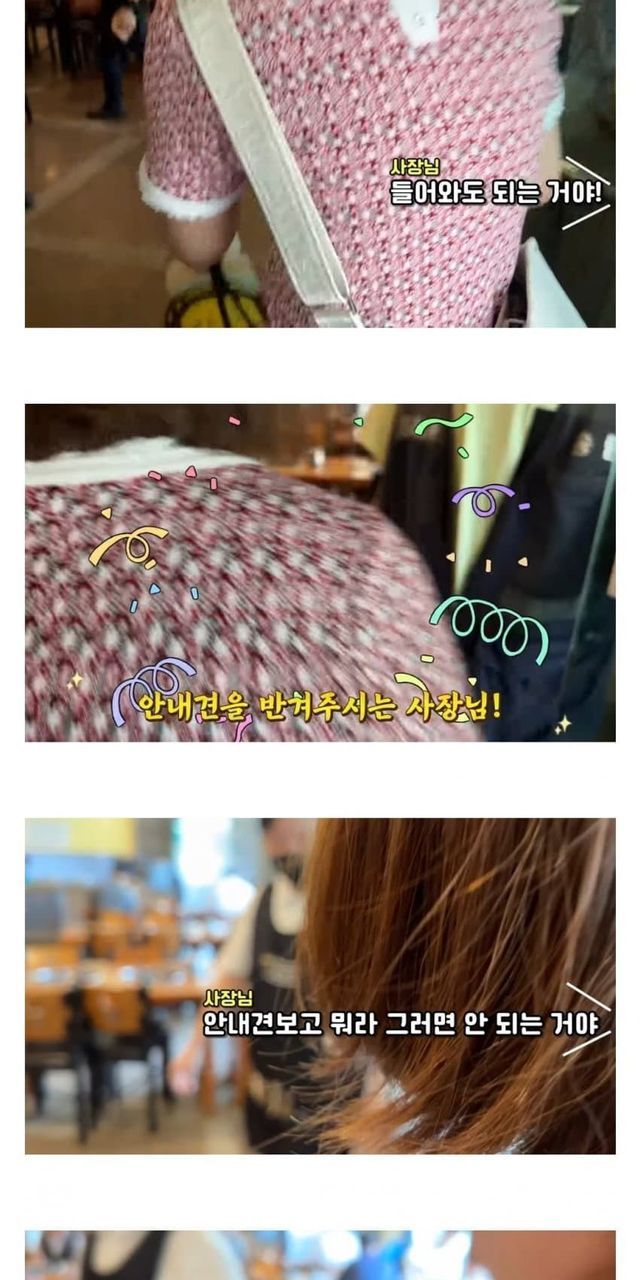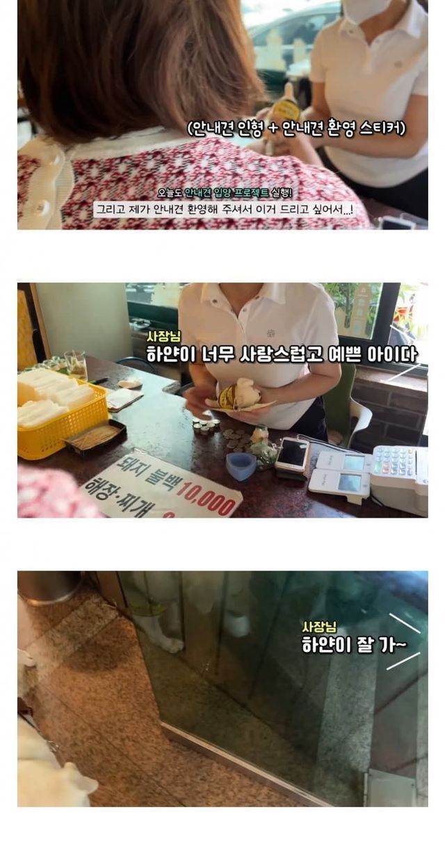 안내견이 식당에 들어오자 일부러 큰 목소리로 반겨주시는 사장님.