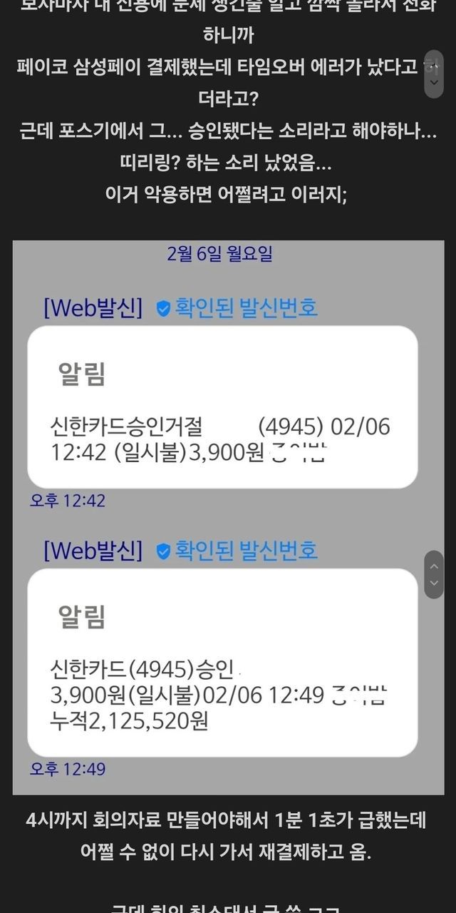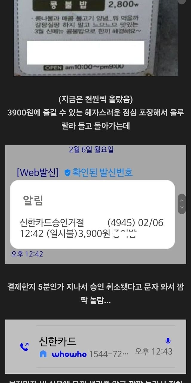 밥 포장해왔는데 카드 취소된 사람ㄷㄷㄷ.