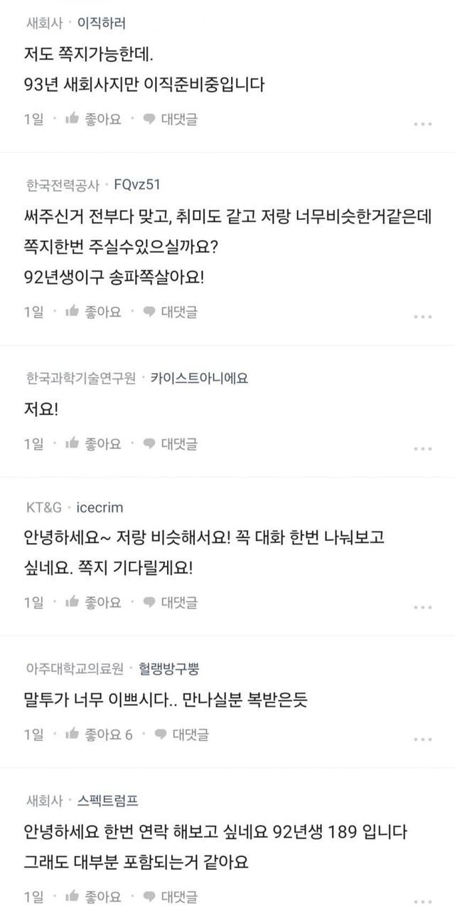그나저나 요즘 블라인드에서 서로 쪽지로