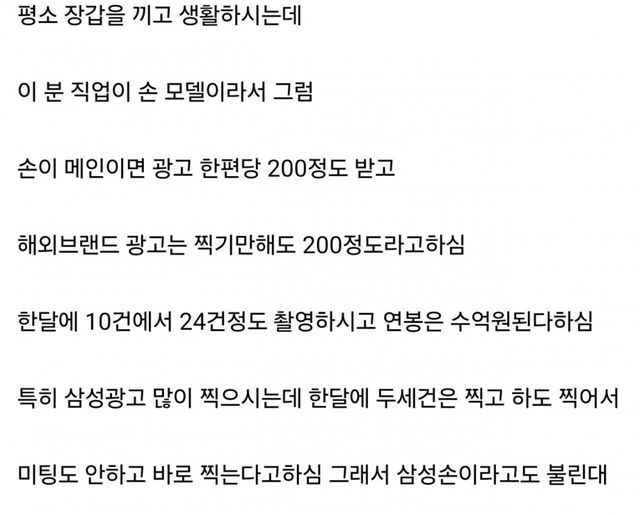 광고 1개에 200만원 받는 손 모델녀 ㄷㄷ