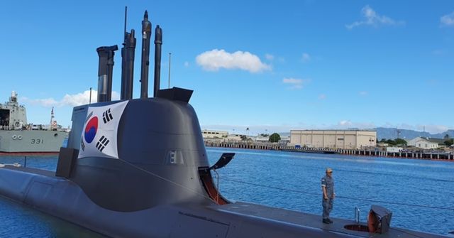 지난 7월 8일(현지 시각) 하와이 진주만 히캄 기지에 정박 중인 우리 해군의 손원일급 잠수함 이범석함의 모습 / 뉴스1