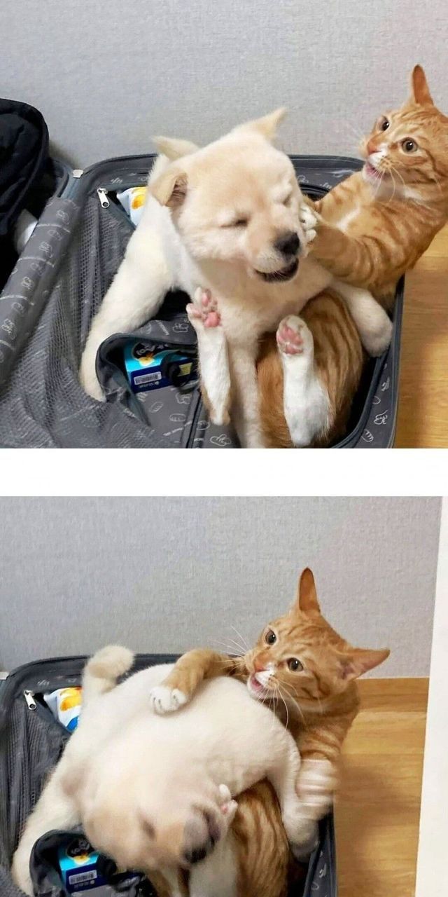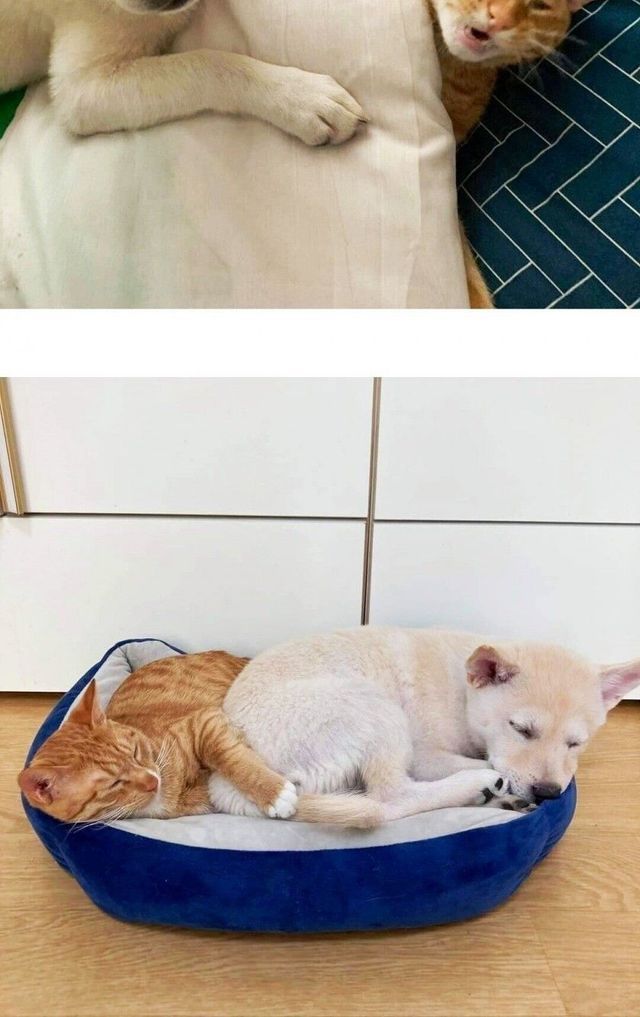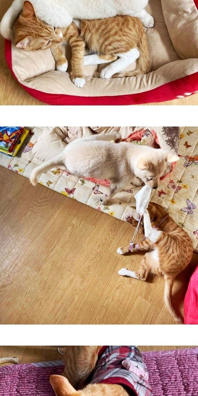 새끼때 부터 같이 자란 강아지와 고양이.