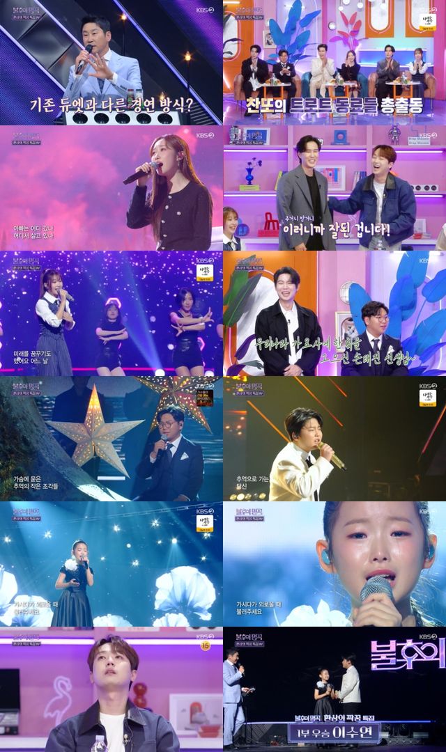 KBS2 ‘불후의 명곡’ 이수연이 모두를 울린 눈물의 사부곡으로 최종 우승 트로피의 주인공이 됐다. 이찬원을 비롯해 자리한 레전드 짝꿍 출연진까지 모두 눈물을 훔쳤다.