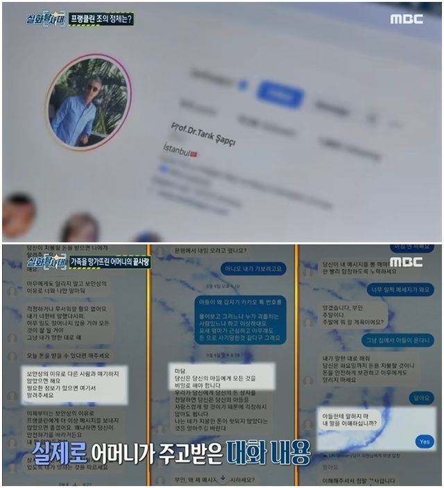 튀르키예의 유명한 의사 사진을 도용한 로맨스 스캠 가해자 조와 피해자 A 씨가 나눈 대화/ MBC