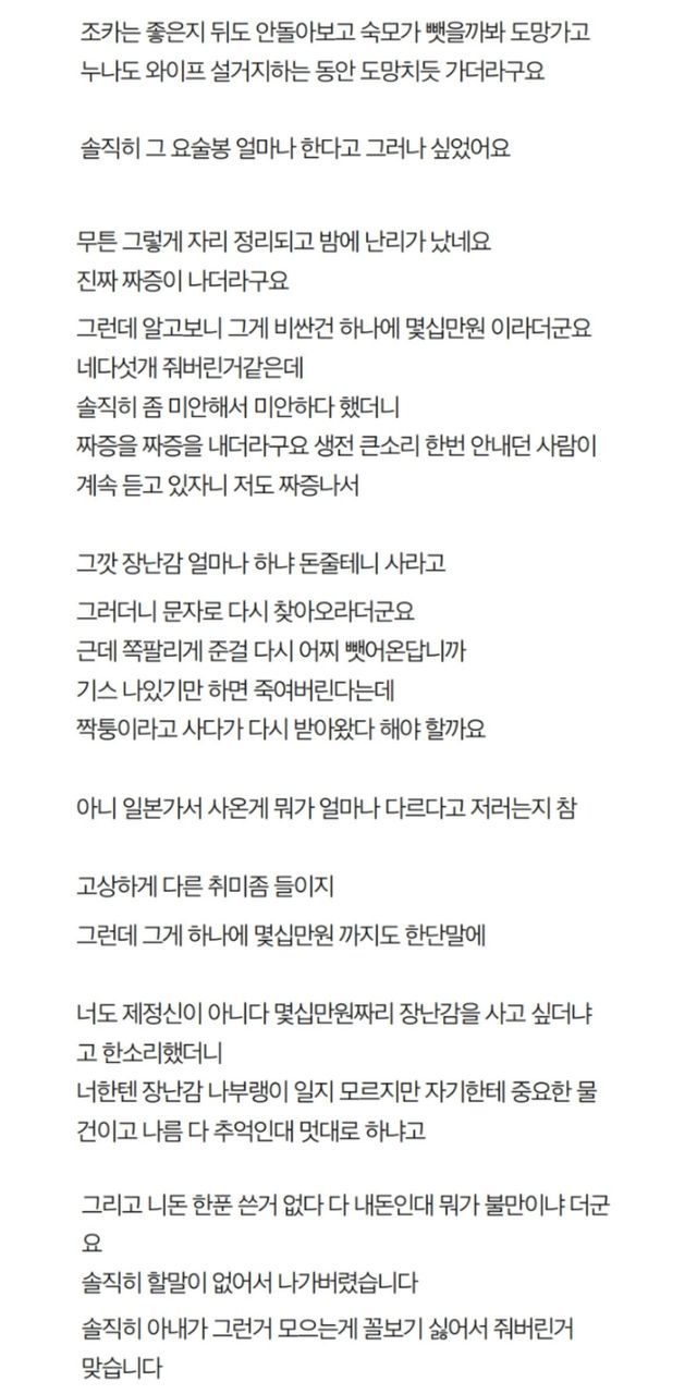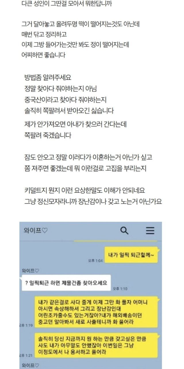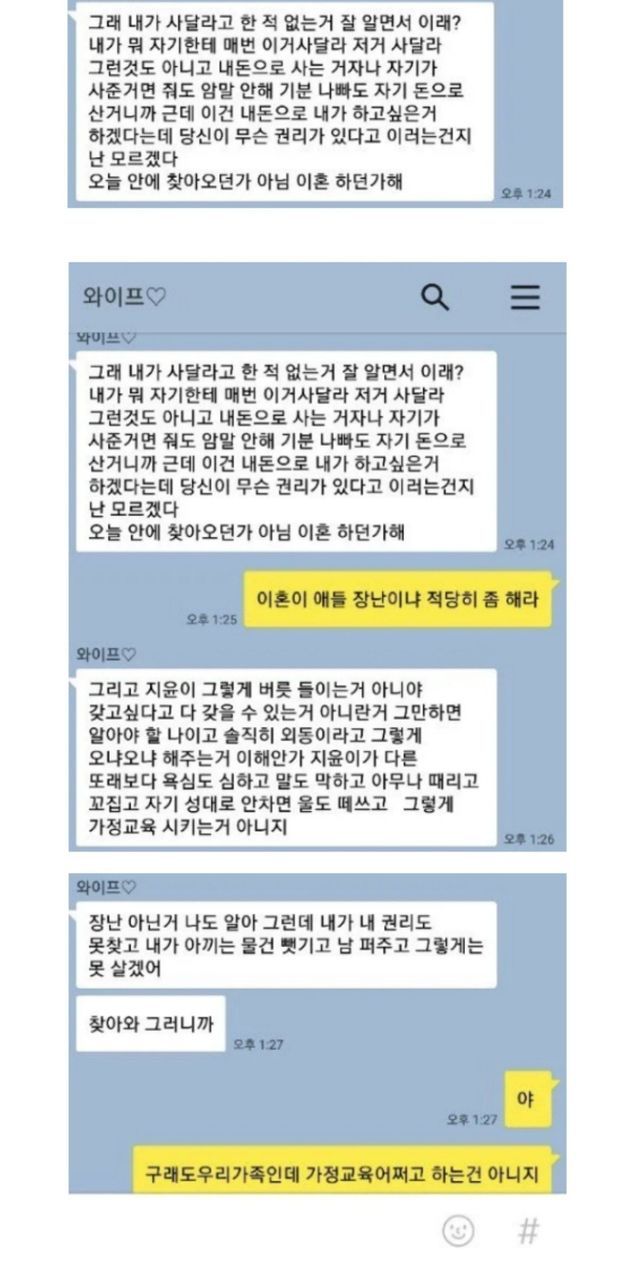 남의 물건 마음대로 줘놓고 이혼이 애들 장난이냐니
