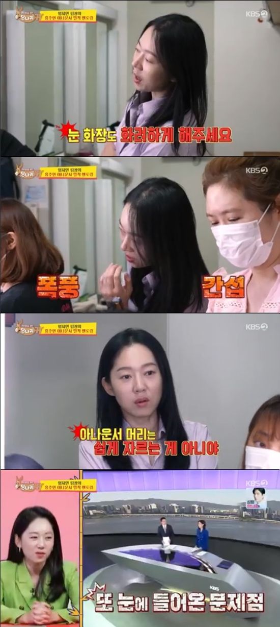 (엑스포츠뉴스 원민순 기자) 아나운서 엄지인이 후배 홍주연의 헤어스타일을 단속했다.