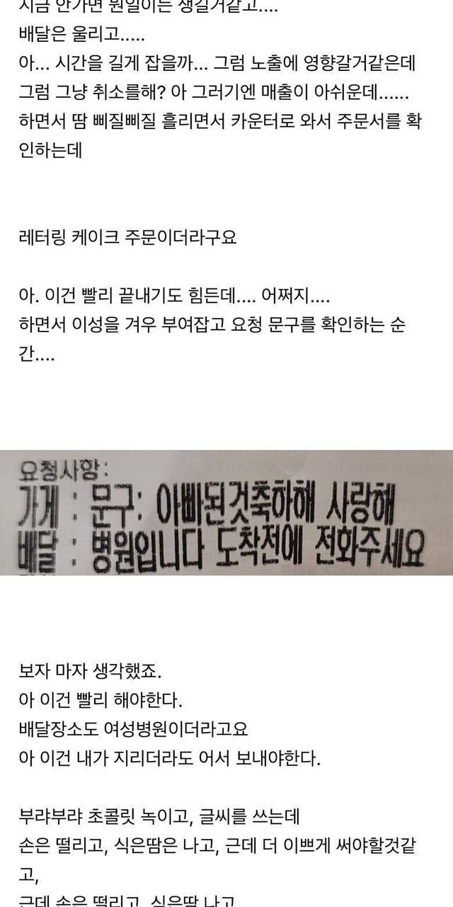 괄약근이 저절로 조여지는 초콜릿 레터링 케이크 썰.