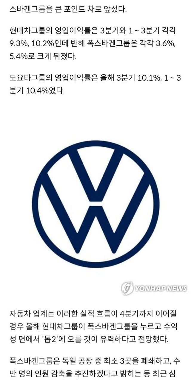 폭스바겐의 상황으로 볼때 4분기 실적 또한 부진하여