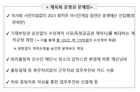 ⑥ 여섯째, 기타 체육회 운영에 다수의 문제가 있음을 확인했다.