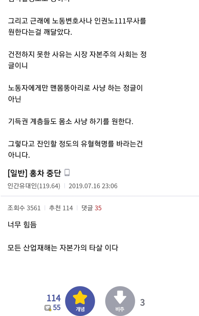 모든 산업재해는 자본가의 타살이다.⋯
