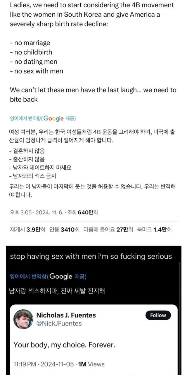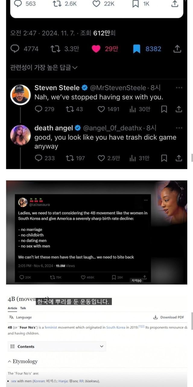 조롱거리로 전락한 한국 페미들의 4B운동??!