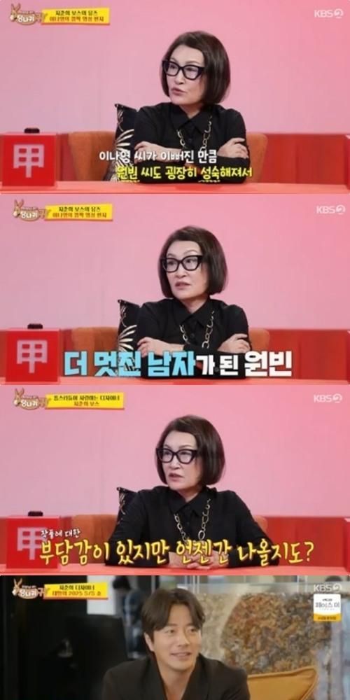 10일 방송된 KBS 2TV ‘사장님 귀는 당나귀 귀’에서 패션 디자이너 지춘희는 오랜 친구인 배우 이나영과의 영상 통화를 통해 원빈의 근황을 간접적으로 전했다. 지춘희는 이나영에게 “원빈 씨가 요즘 어떻게 지내냐”고 묻자, 이나영은 “본인이 부담을 갖고 있는 것 같다”라며 조심스럽게 말했다. 이어 “작품은 계속 보고 있는 것 같다”라고 덧붙여 원빈의 연기 활동에 대한 기대감을 높였다.