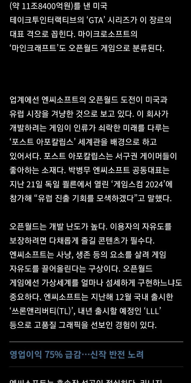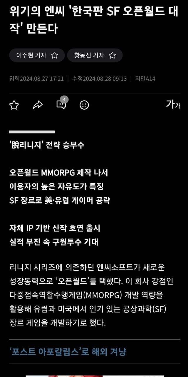 김택진 발표: “리니지 버리고 한국형 오픈월드 SF 대작 게임 출시할것”.