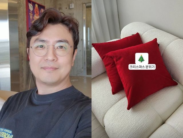 뿐만 아니라 "크리스마스 분위기"라는 글과 함께 소파 위에 빨간 쿠션사진을 게재하기도.