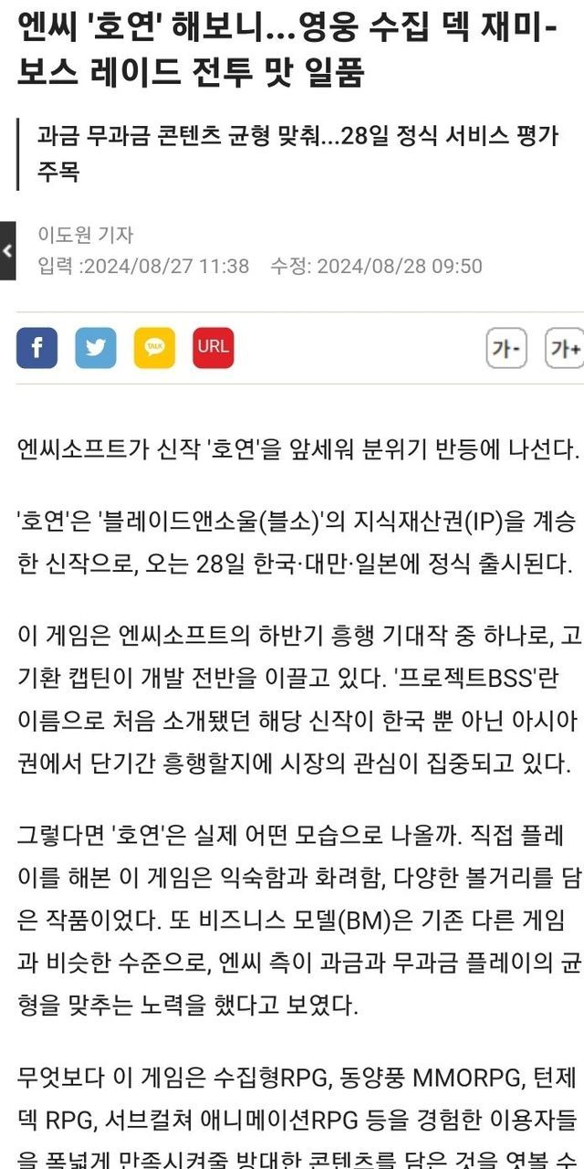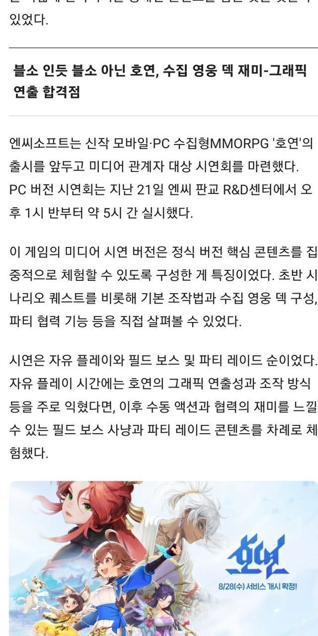 한국언론, 엔씨 신작 호연 극찬: “과금 유도 전혀 없는 대작 명품 게임”.