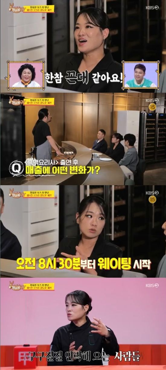 정지선은 매출이 3배가 상승했다며 8시 30분부터 웨이팅 줄이 있다고 했다.