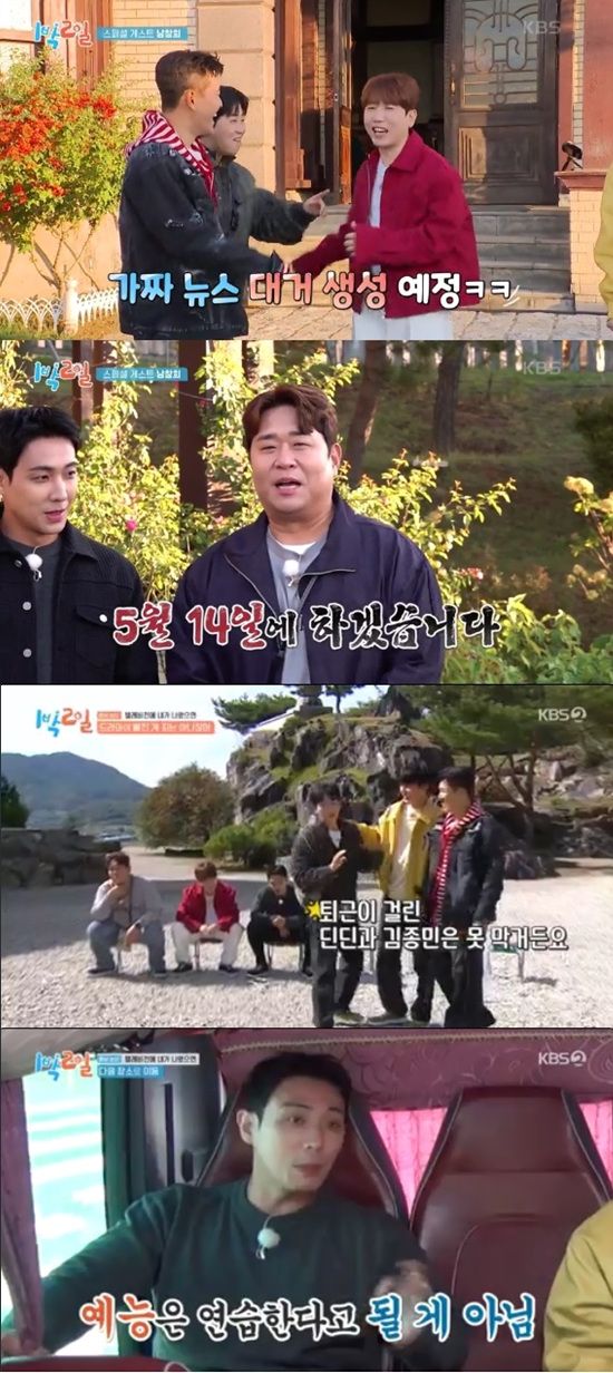 10일 방송된 KBS 2TV '1박 2일 시즌4'에서는 김종민, 문세윤, 이준, 딘딘, 유선호가 조세호 대타 남창희와 충남 논산 여행을 떠나는 모습이 전파를 탔다.