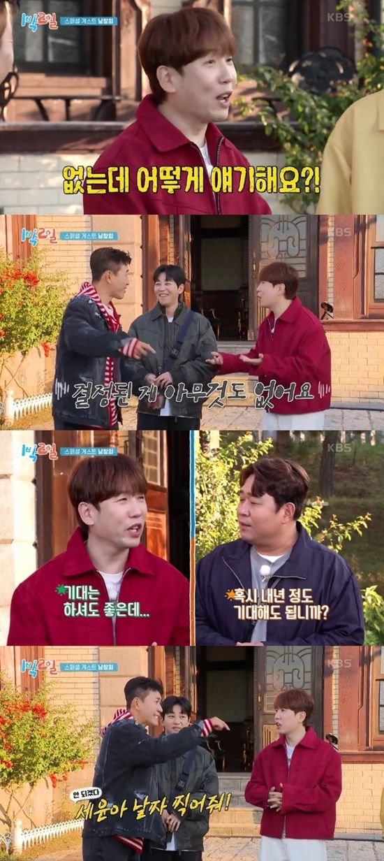 김종민과 문세윤은 "지금 얘기해"라고 남창희를 몰아갔다. 남창희는 "없는데 어떻게 얘기를 하느냐. 결정된 게 아무 것도 없다"고 했다.