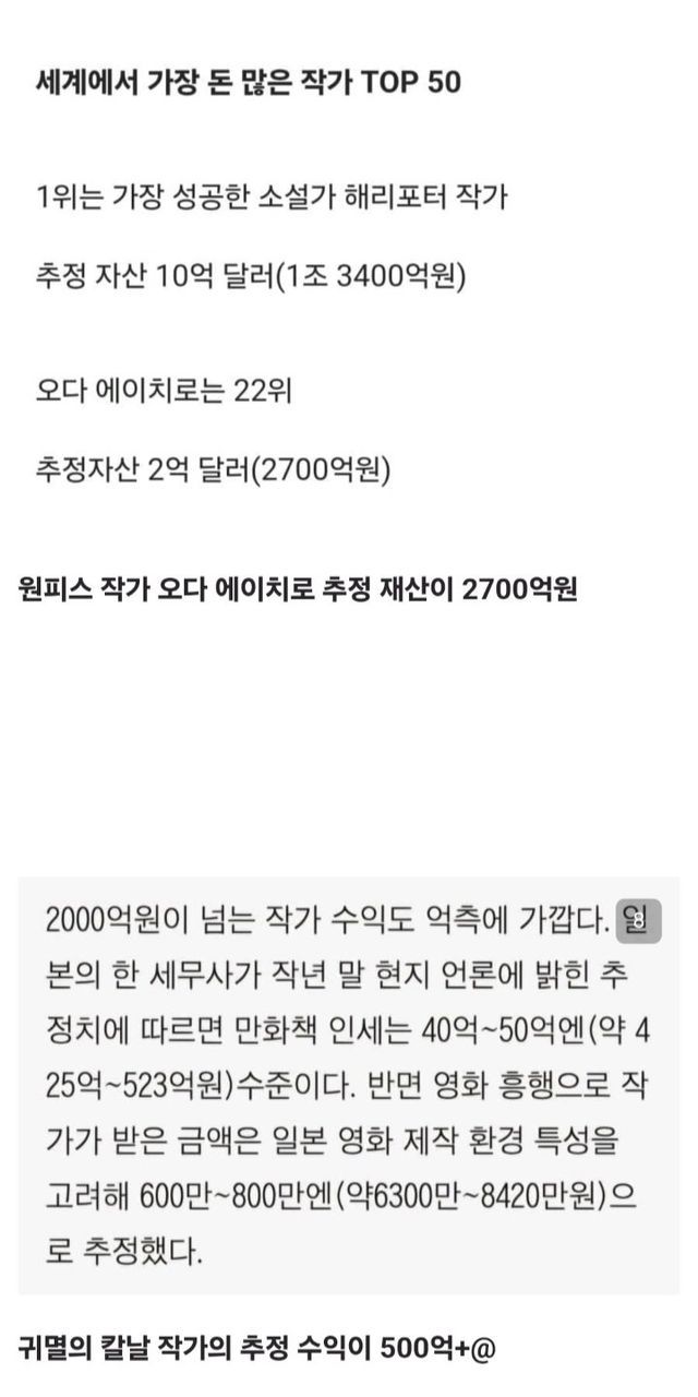 드래곤볼 작가 토리야아의 재산