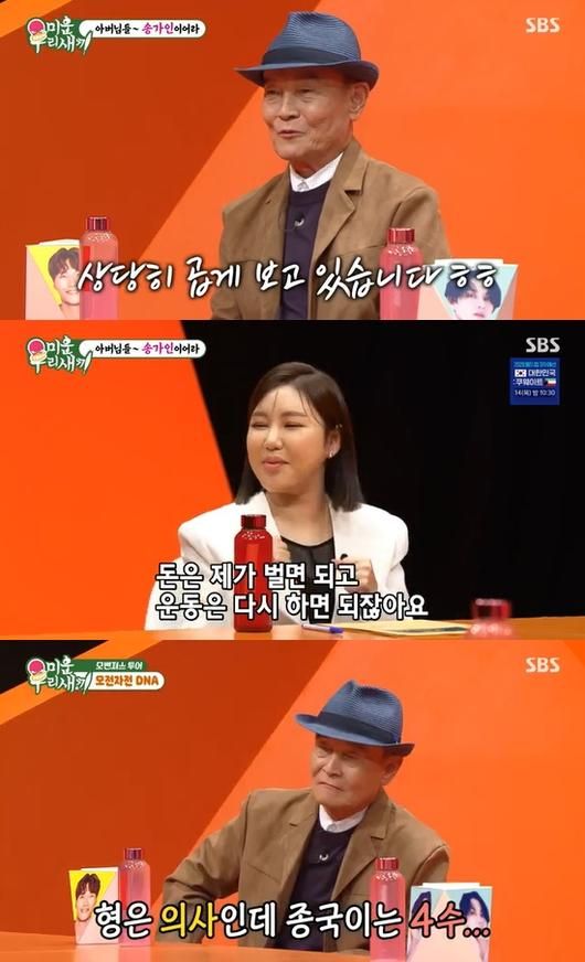 송가인은 오랜 팬들 사이에서도 유명한 ‘김종국 바라기’로, 이상형에 대해 질문받자 망설임 없이 김종국을 꼽았다. 이에 신동엽이 “송가인이 김종국을 이상형으로 꼽은 지 오래다”라며 김종국의 아버지에게 송가인 같은 며느리에 대해 어떻게 생각하는지 묻자, 김종국의 아버지는 “곱게 보고 있다”라며 흐뭇한 미소를 지어 스튜디오에 묘한 기대감을 불러일으켰다.