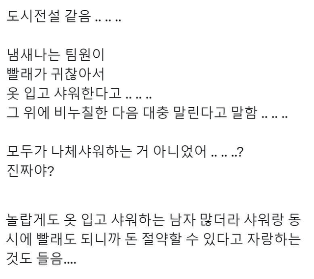 빨래하기 귀찮아서 옷입고 샤워하기......
