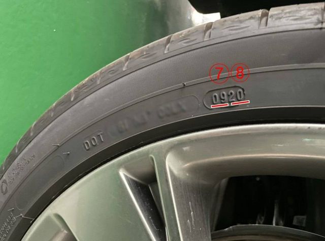 이미지상 7번에 있는 숫자 ‘09’는 타이어를 제조한 주(Week)를 의미합니다. 8번에 있는 숫자 ‘20’은 타이어를 제조한 연도를 뜻합니다. 이미지에 있는 타이어는 2020년의 아홉 번째 주에 생산한 타이어라는 뜻입니다.