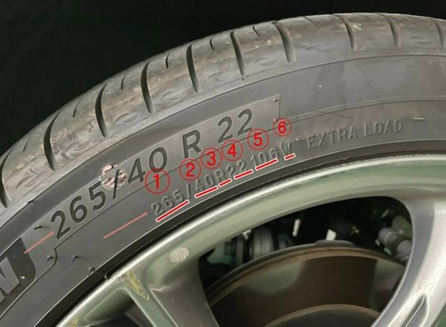 이미지상 4번에 있는 숫자 ‘22’는 휠의 지름 뜻하며, 단위로 인치를 사용합니다. 이미지에 있는 타이어는 22인치 제품입니다.