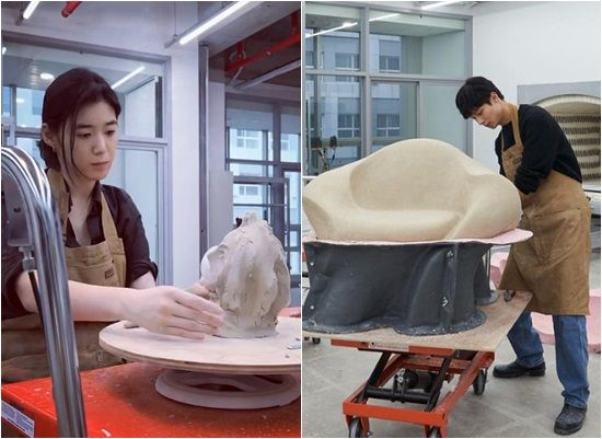 지난해 7월 정은채는 김충재의 작업실로 보이는 곳에서 앞치마를 입고 점토 작업에 집중한 모습을 공개했다.