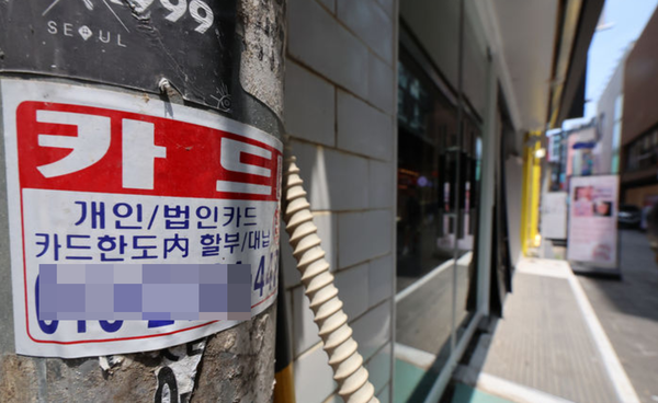 서울 중구 명동 시내의 한 가게 앞에 카트대출 안내문이 붙어 있다.