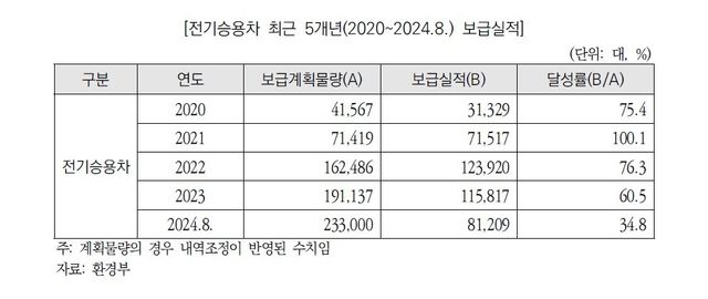 예정처는 2021년 7만여 대의 보급 목표를 채운 이후 2022, 2023년에는 모두 보급 목표를 달성하지 못했다고 지적하고 있는데요.