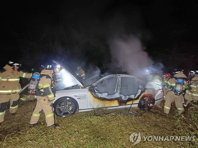 피해자 승용차 불태우고 증거인멸 시도 / 연합뉴스 (충남 서산소방서 제공)
